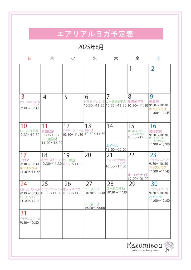 ★★★★→美脚美尻・くびれ&バストUP・ボディメイク・各種ピラティス・ピラティスエアリアル(筋トレが多いクラス)